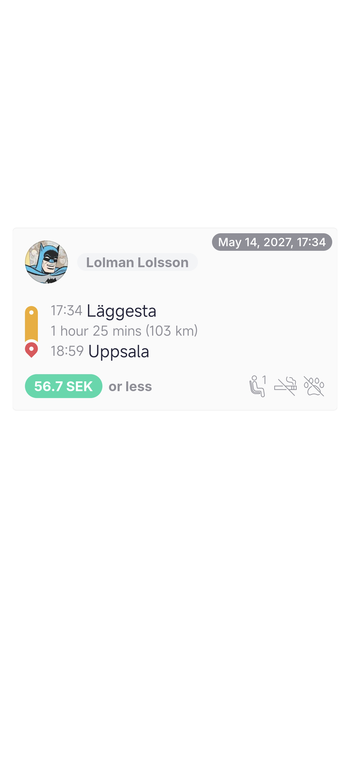 Book a seat or post a trip, split the cost and make the journey both cheaper and more environmentally friendly.